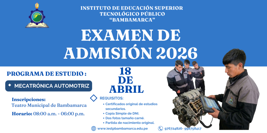 La carrera de Mecatrónica Automotriz forma profesionales técnicos con competencias en sistemas mecánicos, eléctricos y electrónicos del vehículo moderno. Bajo la dirección del Ing. Carlos Joel Farroñan Cespédes, se garantiza una formación académica orientada a la excelencia y a las necesidades del sector productivo.